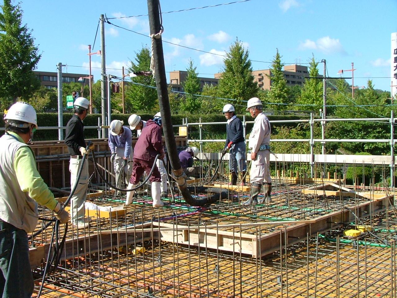 下見の学生マンションは今のところ順調に進んでいて(現場は土日もなしでがんばっています!)、2階スラブ1階壁のコンクリート打ちがありました。